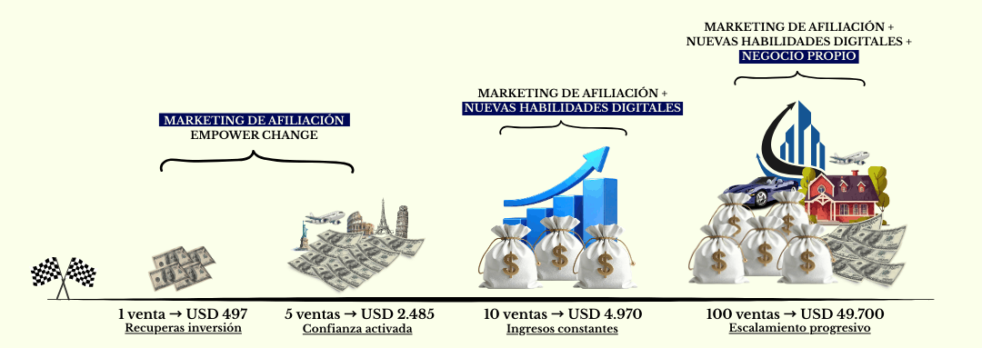 Hoy, esa experiencia está reunida en Empower Change Master College: una formación completa, práctica y probada, pensada para empezar desde cero o escalar un negocio existente, con la posibilidad de generar ingresos desde el primer día.